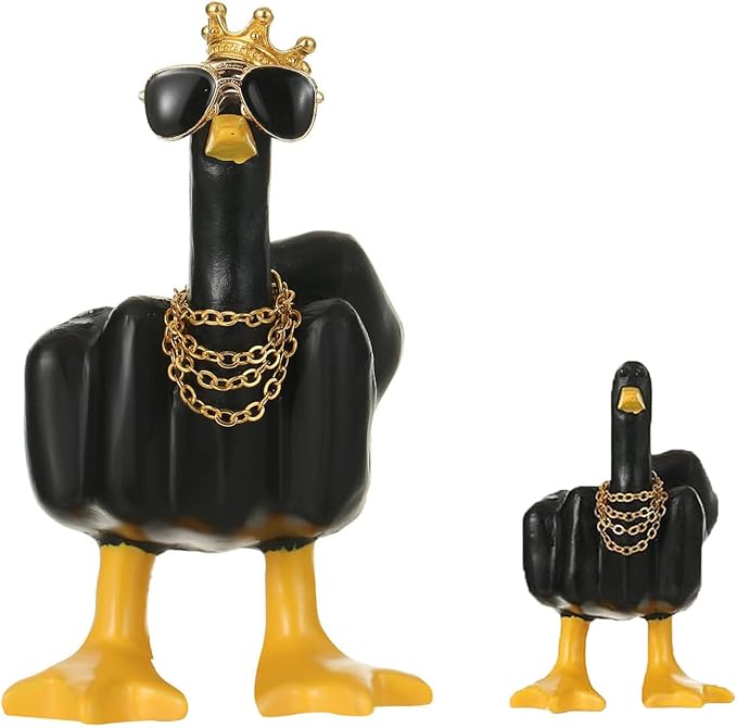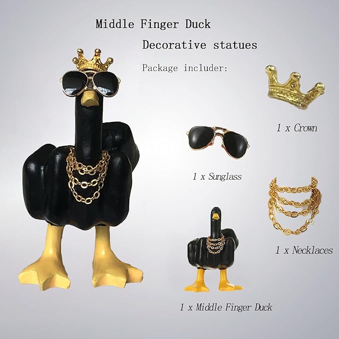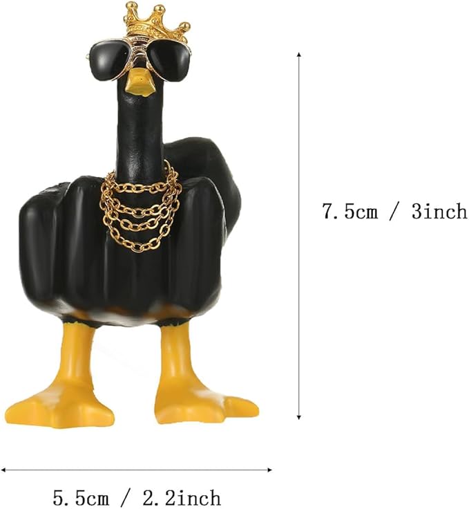 • New Design:The playful Middle Finger Duck is even cooler with the new addition of sunglasses, a necklace, and a crown that will make anyone who sees it smile and add a touch of fun to their lives, whether it's at home or in the office