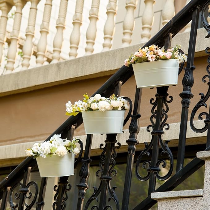 • Ease of use: Iron railing hanging planters is suitable for both outdoor and indoor use, and the included detachable hooks can be easily hung anywhere, adding color and vitality to your living environment.