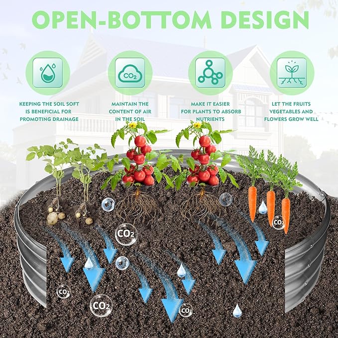 • Durable Construction: The 60 inch diameter round galvanized garden raised bed is made with strong galvanized steel material with crimped edge and corner,no sharpe, ensuring safely using it and long-lasting durability and resistance to rust