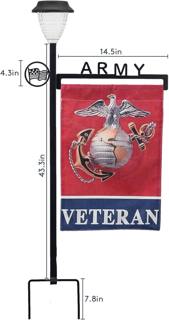 Army Garden Flag Stand Holder with Solar Light Garden Flag Pole with American Flag Gifts Lawn Yard Flag Holder Stake for Flag Outdoor Lawn Décor