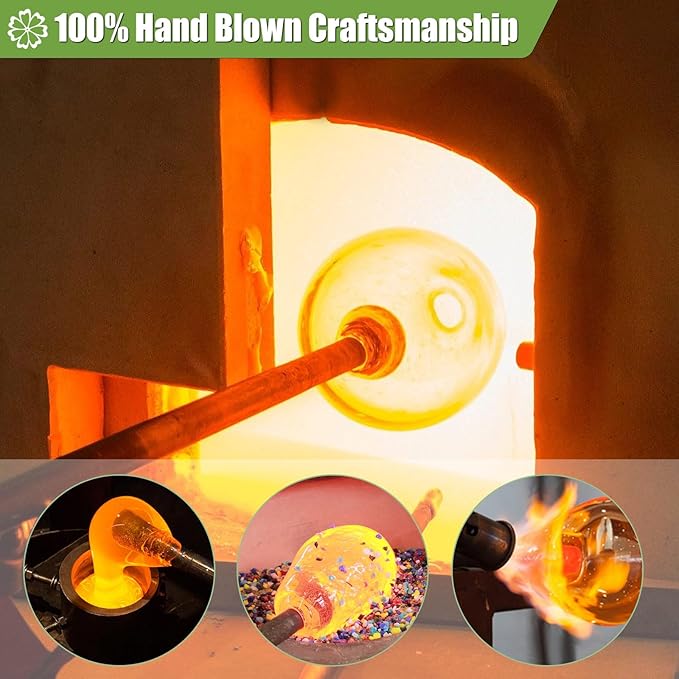 • Hand Blown: Handmade glass feeder is thick, durable, and unique. Bright color attract more hummingbirds to your garden. Equipped with quality ant moat hook for hanging, premium metal cap and plastic base with leak-proof edge, no worries about messy spills