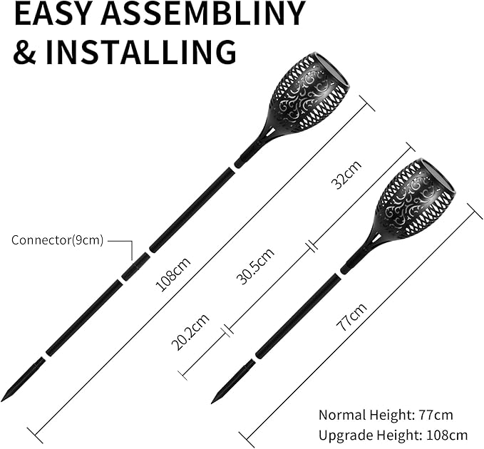 • Gorgeous Dancing Flames: Our self-charging solar lamps charge by day and turn on automatically at night. They have 3 beautiful modes; Flickering Flames, Slow Fade from On/Off/On, or Full Brightness. They are gorgeous and attractive and look fantastic as decorative outdoor lighting. Whether lining pathways and driveways, placed in gardens, or just used during the holidays such as Halloween or Christmas, these light can do it all.
