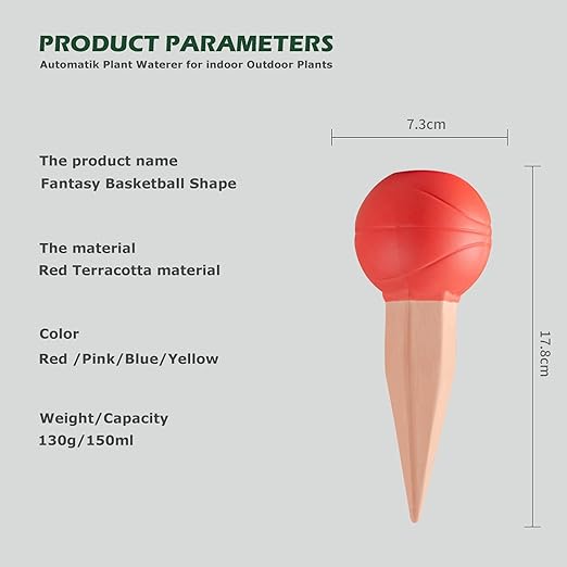 4 Pack Terracotta Watering Spikes, Vacation Self-Watering Planters Devices - Continuous Moisture with Slow Release Watering System - Perfect for Indoor Outdoor Plants (Basketball)