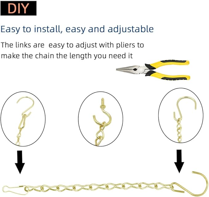 • ✅EASY TO INSTALL, EASY AND ADJUSTABLE: Hooks and clips are supplied. bird feeder chain can be easily DIYed to different sizes, allowing for the versatile hanging of various items. By customizing the chain's length, you can ensure a perfect fit for different objects, chain with hooks for plants, brass hanging planter