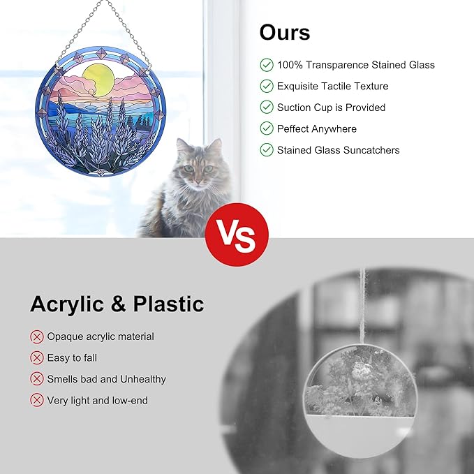 • 【100% Handcrafted Elegance】 - Each piece is meticulously crafted by skilled artisans, ensuring a unique and elegant design that adds a touch of sophistication to any window. Stained glass window hangings is made of 100% American glass, not acrylic/plastic/metal, etc material.