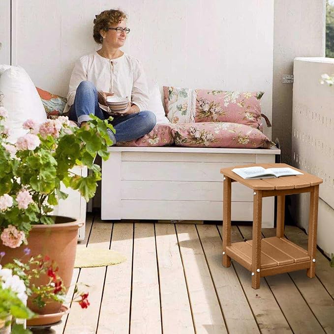 Adirondack Square Outdoor Side Table,2-Tier Storage Patio Side Table, HDPE End Tables for Backyard Pool Porch Garden Lawn BrownRed