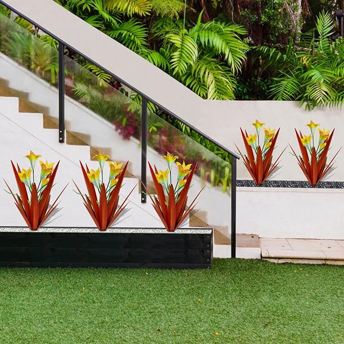 • 【 Easy to install 】 The metal agave is 16 inches tall, with nice lily flowers in the middle, and comes with a ground insert for more firm resting on the ground. Just place it anywhere you want, garden, yard, patio. It can be placed on the ground, on the patio, and used as a planter