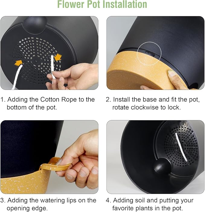 • 【Self-Watering Design】 Self-watering pots is includes a water reservoir at the bottom of the planter. This flower pots automatically supplies water to your plants as needed by a cotton rope, reducing the frequency of watering and ensuring your plants never go thirsty. The reservoir design also helps maintain a consistent moisture level, fostering optimal growth conditions.