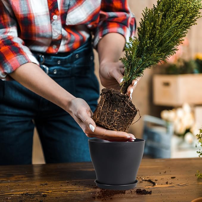 • 【Drainage Holes and Trays】Each plant pot features well-designed drainage holes at the bottom to ensure proper water flow. Additionally, saucers catch excess water, keeping your growing area clean and tidy while also ensuring that your plants remain hydrated without becoming waterlogged.