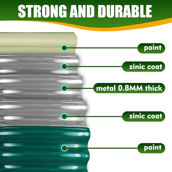 • Rust Resistance: The garden bed is made from corrugated galvanized steel with anti-corrosion paint for rust resistance, ensuring longevity