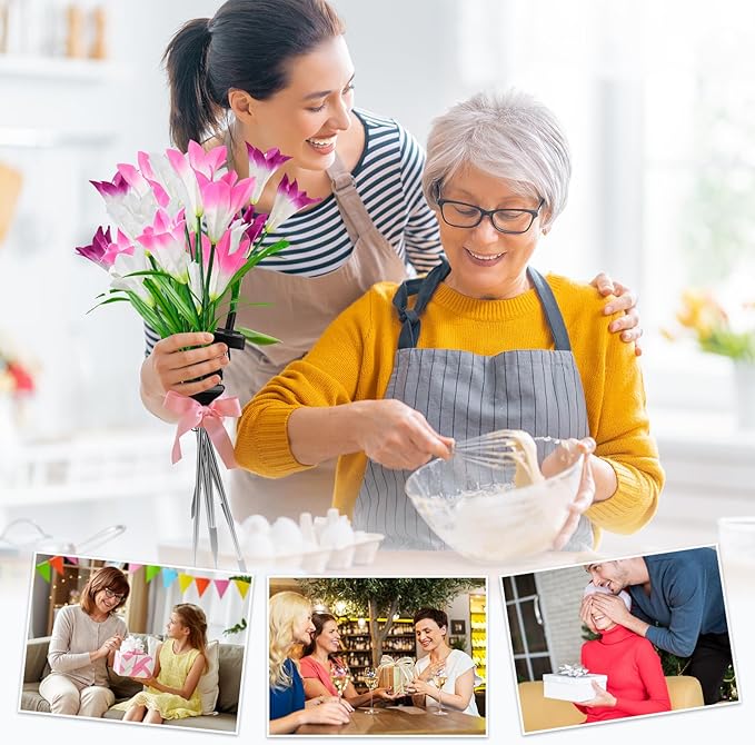 • 24 BLOOMING SOLAR LILIES: 6 pack outdoor solar garden lights have 24 blooming bigger lily flowers come in 3 colors: purple, pink, and white. The lily flowers made of fine processed fabric, stems and leaves are propped up by iron wire, you can move the stems on them to whatever position you want them in. When night falls, these solar garden lights can light up your garden and create a dreamy atmosphere.