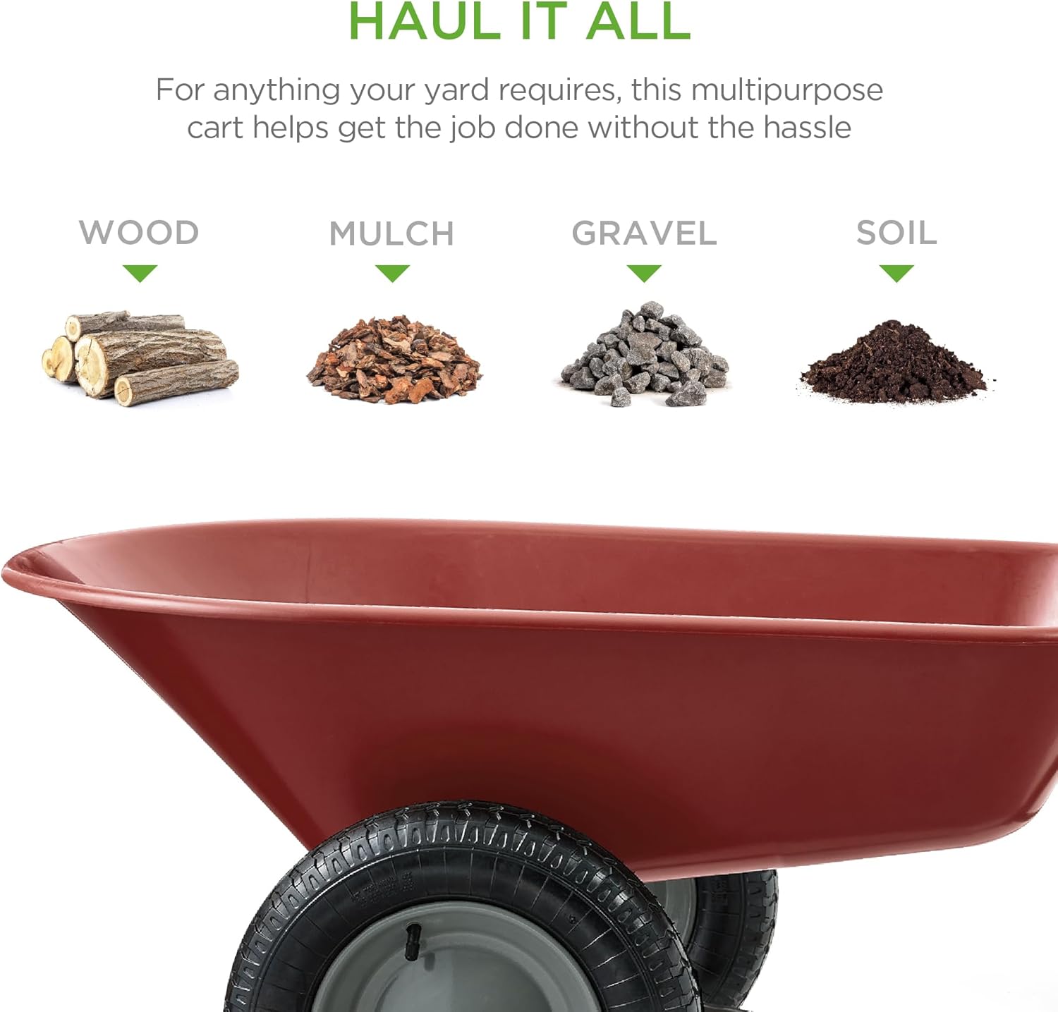 • MULTIPURPOSE GARDEN CART: Deep wheelbarrow holds up to 5 cubic feet of soil, bricks, mulch, gravel, and more, so you can conveniently carry out landscaping and other home improvement projects