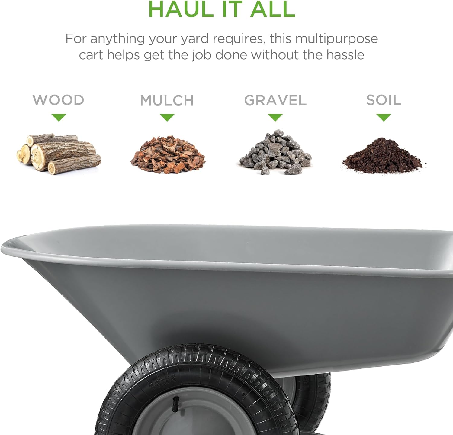 • MULTIPURPOSE GARDEN CART: Deep wheelbarrow holds up to 5 cubic feet of soil, bricks, mulch, gravel, and more, so you can conveniently carry out landscaping and other home improvement projects