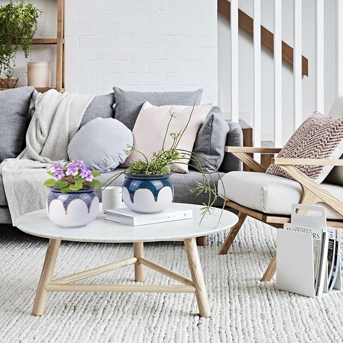 • Elevate Your Indoor Oasis: Our African violet pot seamlessly blends functionality with aesthetics, making it the perfect match for a wide array of indoor plants such as Herbs, Aloe Vera, Baby's Tears, Pothos, Fittonia, Cacti, and Succulents. It's the ultimate addition to embellish your living room, kitchen, office, or any indoor space with a touch of greenery.