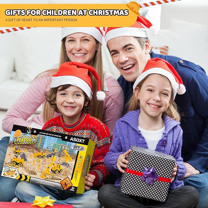 Asoxt 43-Piece Construction Sensory Playset – 2 lbs Play Sand, 4 DIY Trucks, Crane & Road Signs – Creative Sandbox Toy for Kids Ages 3+