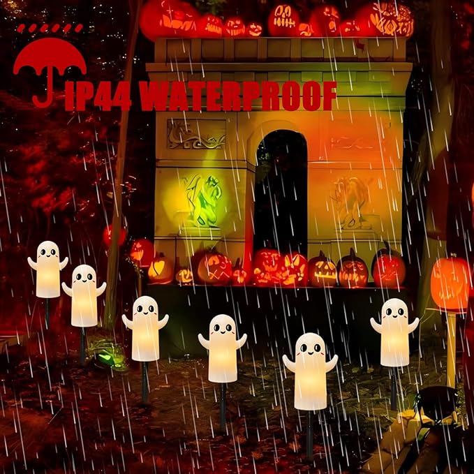 • Weatherproof and Durable: Halloween pathway stakes lights designed to withstand outdoor conditions, plug in white ghost halloween pathway lights are made with waterproof materials, ensuring they can handle rain, wind, and even snow without any issues. Built to last, outdoor decoration garden lights will be a staple in your Halloween decorations for years to come.