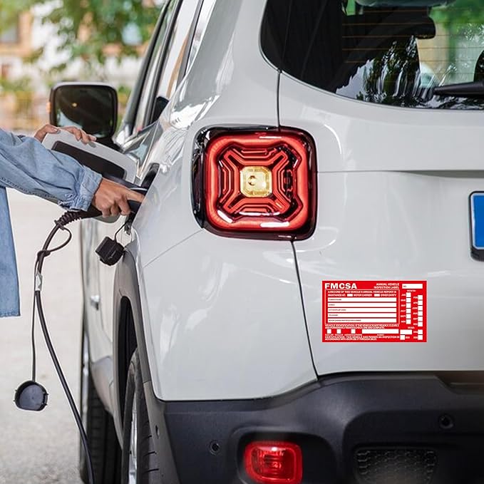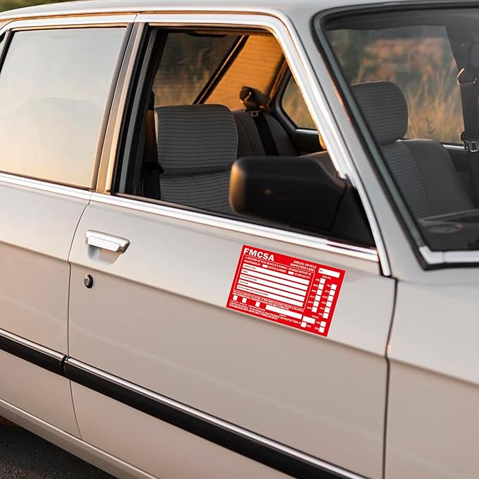 • Durability and Convenience:Durable 1.6 mil aluminum FMCSA sticker is red with permanent adhesive ensuring label will not peel off or be destroyed by the elements ensuring long-term protection of annual inspection records for future reference.