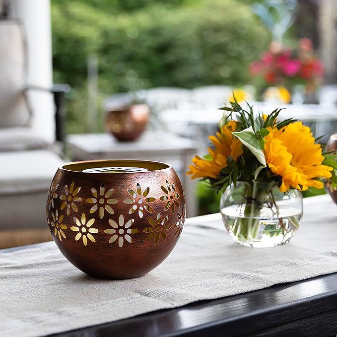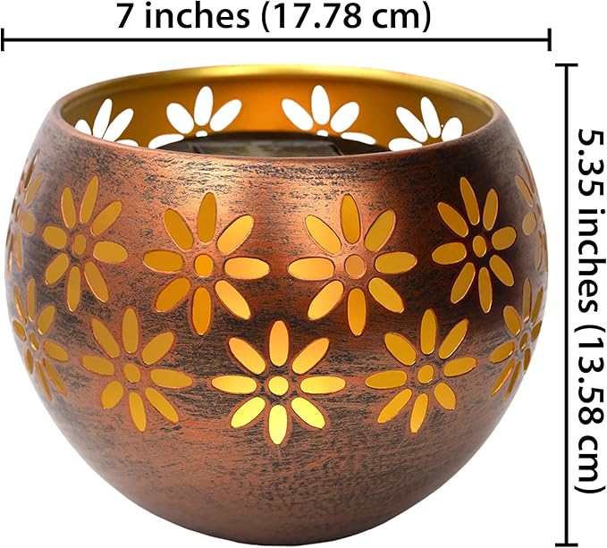 • 5.4” Metal Decorative Bowl - The Solar Fire Bowl features a stylish metal design, adding a touch of sophistication to your outdoor garden decor while serving as a functional solar table lamp, lantern and garden decor.