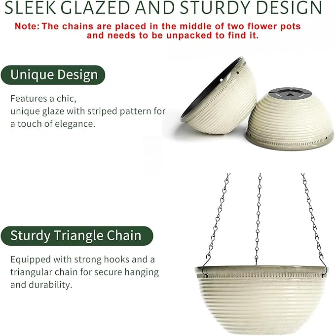 • Stylish Glazed Design: Hanging planter made from sturdy plastic with a glazed finish, this 10 inch hanging pot offers a sleek, modern look that complements any dΓ©cor. Perfect for both indoor and outdoor use.