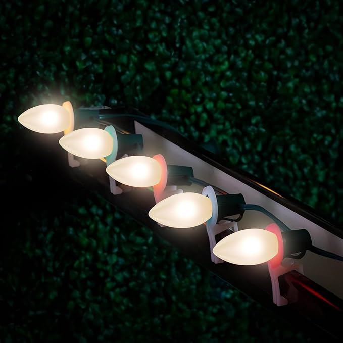 • Quick and Simple Installation: Decorating is a snap with warm white outdoor lights! Perfect for illuminating your tree, draping over your patio, or enhancing garden spaces, the E17/C9 candelabra socket base and clip design make setup fast and straightforward.