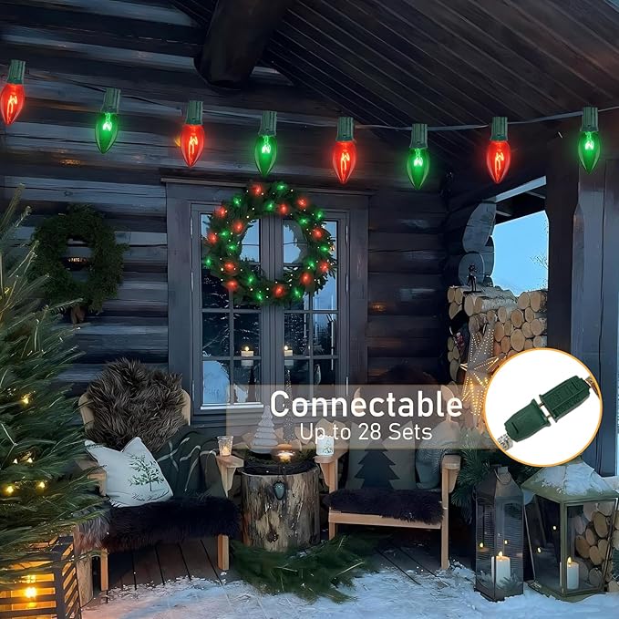 • Simple Setup Vintage Christmas Lights: Decorating has never been easier with red green christmas lights! Featuring an E17/C9 candelabra socket and clip sockets, installation is quick and straightforward. Whether you're decorating your tree, patio, or garden, you'll have your display ready in no time.