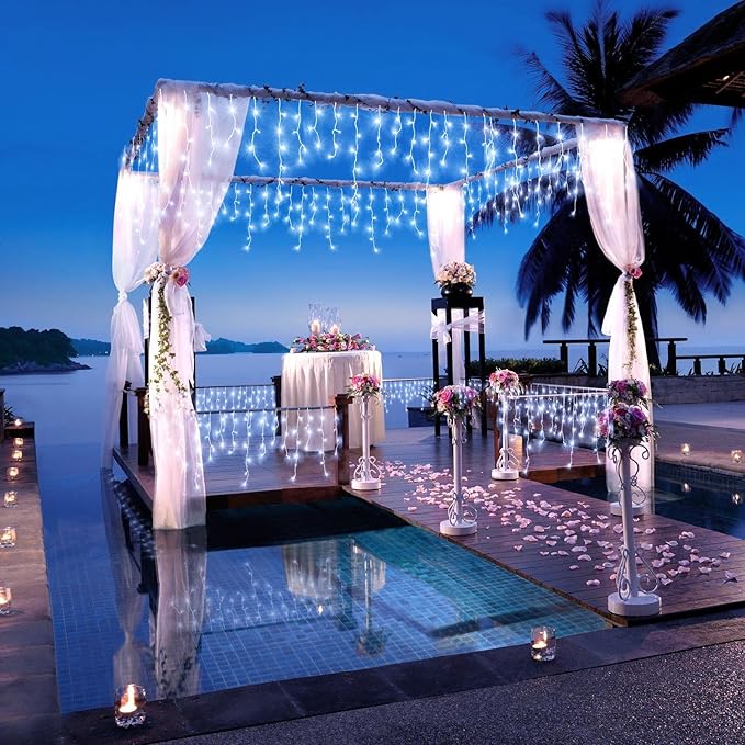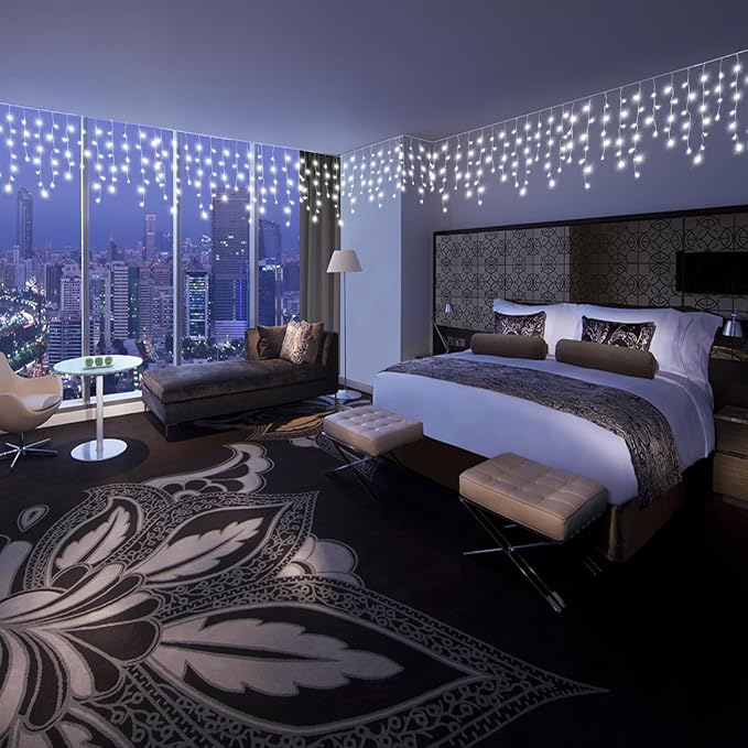 • Timer Function - Long press the button on the adaptor for 3 seconds to activate the timer, 6 hours turn on and 18 hours off, freeing up your hands. These icicle lights indoor can be easily draped or hung on the outdoor roofs, yards, window, patio, garden, fence or indoor bedroom, creating a dreamy and romantic atmosphere.