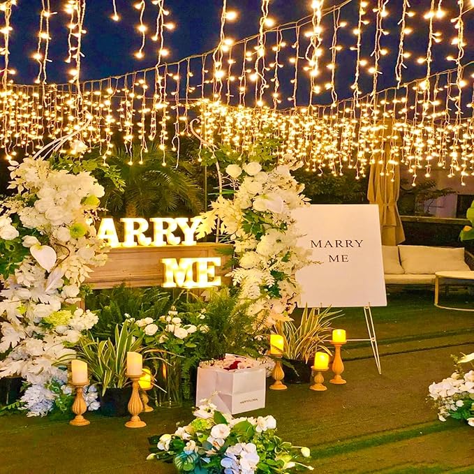 • Timer Function - Long press the button on the adaptor for 3 seconds to activate the timer, 6 hours turn on and 18 hours off, freeing up your hands. These icicle lights indoor can be easily draped or hung on the outdoor roofs, yards, window, patio, garden, fence or indoor bedroom, creating a dreamy and romantic atmosphere.