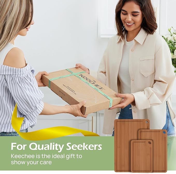 - 𝐁𝐞𝐧𝐞𝐟𝐢𝐭 𝐎𝐮𝐫 𝐇𝐨𝐦𝐞 - Keechee's cutting board set is crafted from sustainably harvested quality bamboo forests(Bamboo grows quickly and a single bamboo can be harvested multiple times). Known for its natural strength and eco-friendliness, our bamboo provides a durable and environmentally responsible choice for your kitchen.