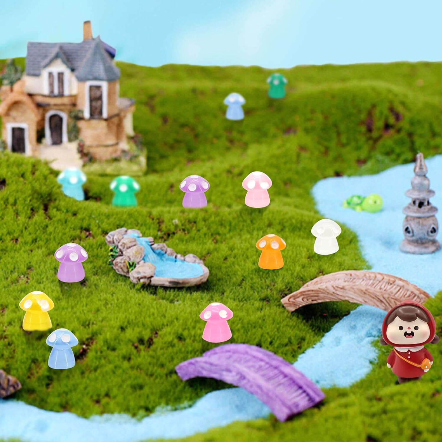 • 【Luminous Design】Mini Resin mushrooms have a unique luminous effect. They needs to be placed in the sun to absorb light so that thet can glow in the dark, very cute and ideal for mini fairy garden, home, office decorations.