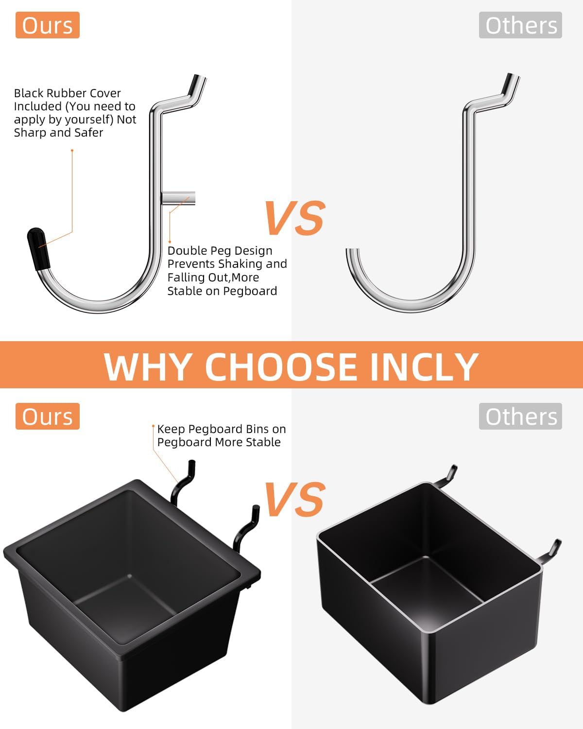 INCLY 158PCS Metal Pegboard Wall Organizer, 48x24 Inch White Pegboard Panels Tool Organizer Kit with Accessories Hooks and Bins, Peg Board Utility Tool Storage for Garage Workbench Shed