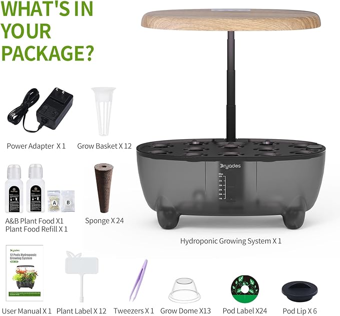 • 12-Pod Indoor Garden Kit: The Dryades Z237 includes 12 pods, making it perfect for growing a variety of herbs, vegetables, or flowers. Its compact design fits seamlessly into any indoor space, offering a modern solution for indoor gardening.