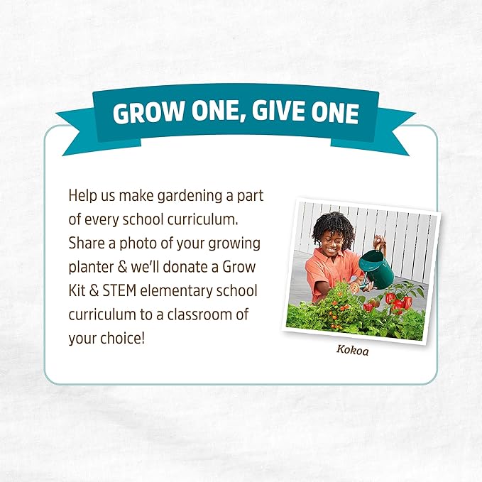 • GROWONEGIVEONE — Help us make gardening a part of every school curriculum. Share a photo of your growing planter & we’ll donate a Grow Kit & STEM elementary school curriculum to a classroom of your choice