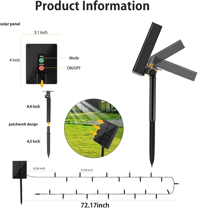 • 【8 Lighting Modes Solar Outdoor Lights】: This solar outdoor lights have 8 different lighting modes, which include waves, combination, fading, fireflies, chasing, twinkle, fading slowly, and steady on.They are exceptional in creating different aesthetic atmosphere within your environment,like Xmas,Birthday,Wedding,Party,Celebrations.