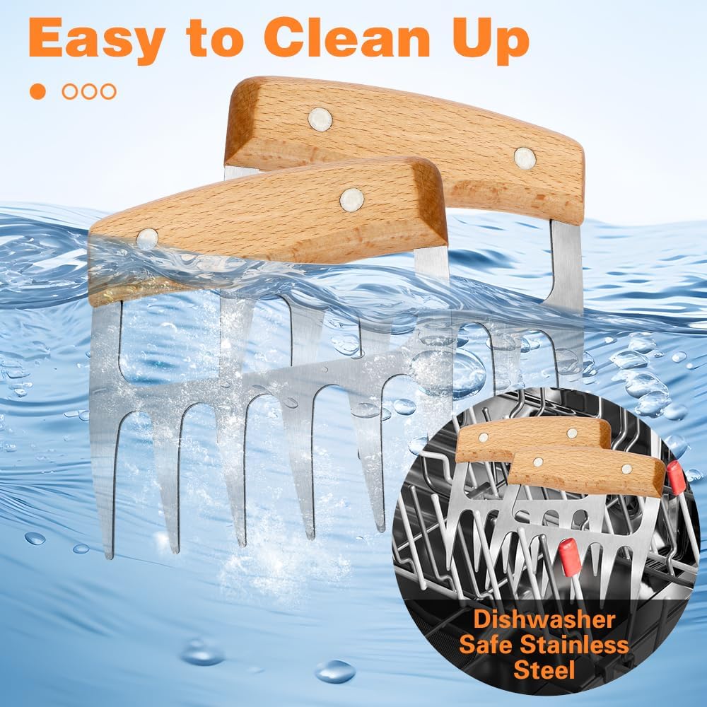 • Safe Design: Our chicken shredder claw provides a safe and secure grip while managing the super-sharp shredding blades. The metal claws crafted from stainless stain and heat-resistant. These shredding claws are designed for easy cleaning and can withstand high temperatures, ensuring they remain functional and durable even during the hottest BBQ sessions.