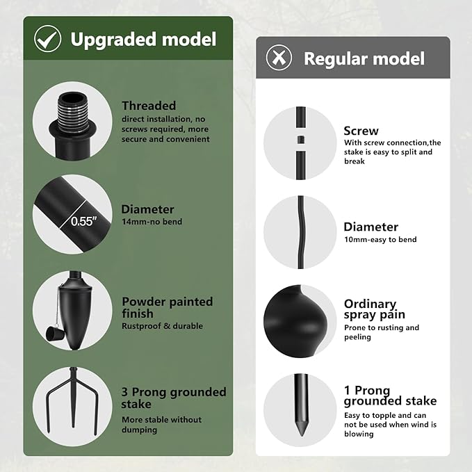 • 【3-Prong Stake】Improved the grounded stakes to 3-prong stake, which is more stable. No bends and breaks.