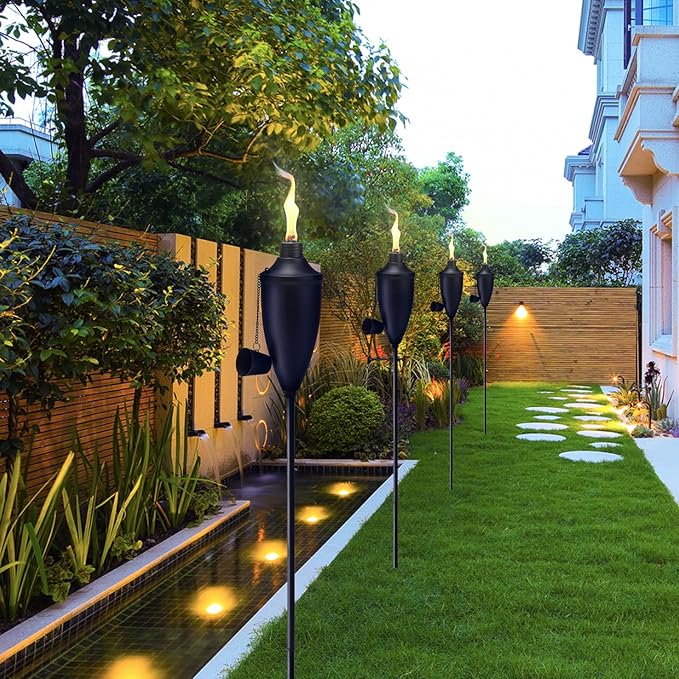 • 【Set of 4】Came with 4 citronella torches, perfect decor for your home, yard, garden, lawn, terrace, backyard, patio, and outdoor use..