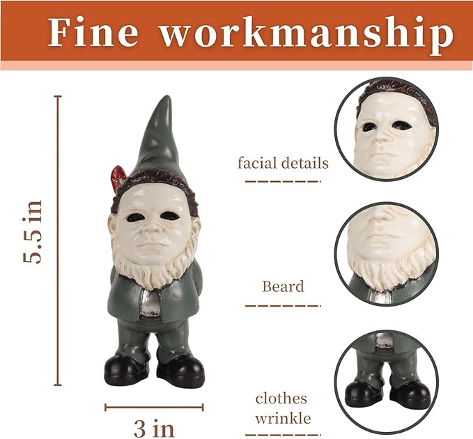 • Halloween Gift: The garden statues for indoor home decor are such cute and funny gnomes. Perfect for hiding in a neighbor's garden or placing in your own garden for a spooky vibe. This is the perfect gift for your friend who loves gnomes and movies