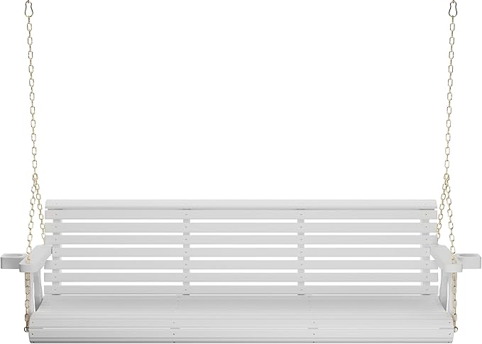 Amish Casual 6 Foot Roll Back Porch Swing with Cup Holders in Semi-Solid White Stain - Amish Made in The USA from Treated Pine Heavy Duty 700 Lb. Weight Capacity