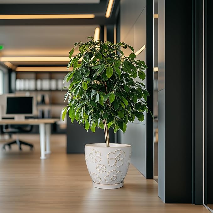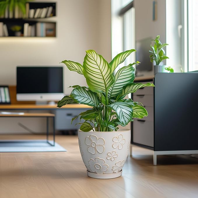 • Stylish Appearance: Our ceramic planter has a white main colour and a beautiful embossed petal pattern on the surface, elegant appearance making it ideal for home decor, garden decor and office decor