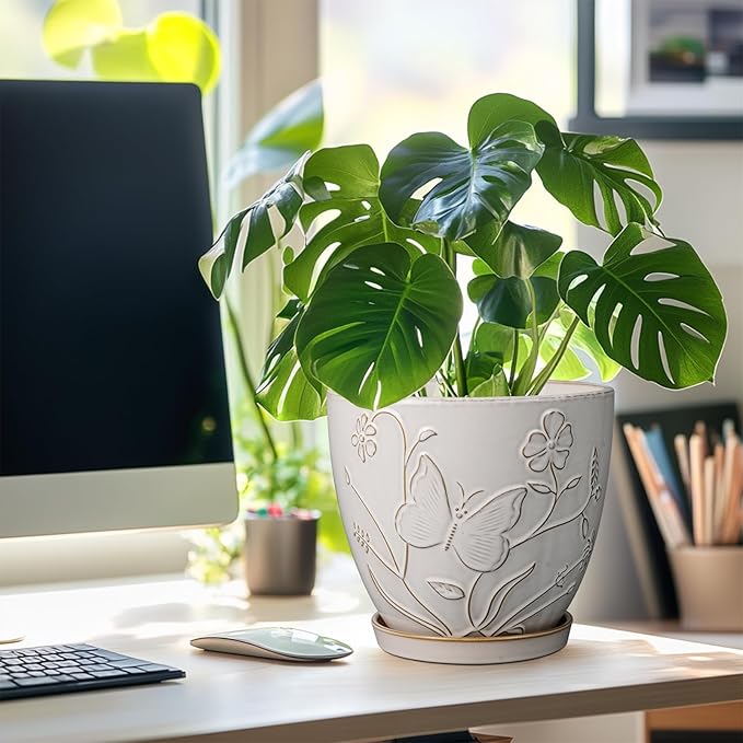 • Stylish Appearance: Our ceramic planter has a white main colour, a beautiful embossed petal and leaf pattern on the surface, elegant appearance making it ideal for home decor, garden decor and office decor