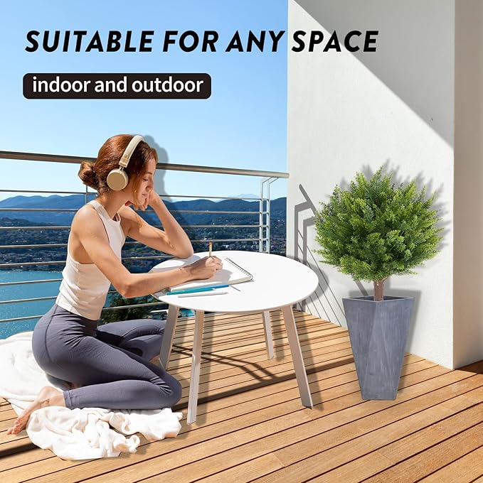 • 【Multi-medium Decoration Choice】This outdoor artificial plant cedar ball tree is realistic looking, each simulated shrub plant comes with high quality black ground spikes, you can put them into any matching pots or insert them directly into the soil, which can better match the style of your house
