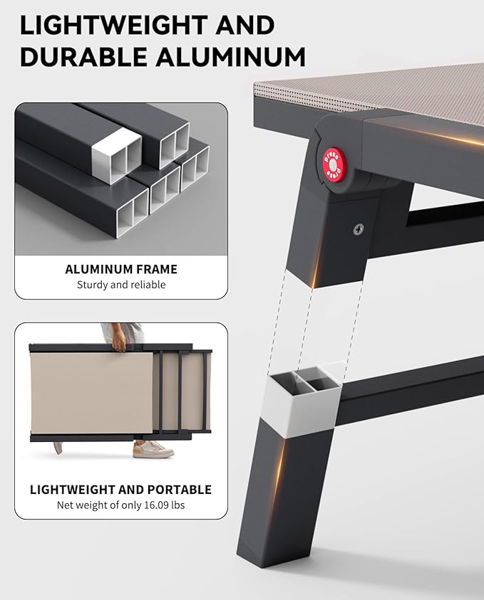 • 【DURABLE & LIGHTWEIGHT】Constructed with a powder-coated aluminum frame, the outdoor patio lounge chair is rust-proof for lasting use. Thickened tube walls make it support up to 400 pounds, catering to most body types. And lightweight design offers effortless portability and comfort for any outdoor adventure
