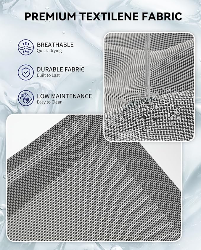 • 【ALL-SEASON COMFORT】Crafted from premium Textilene fabric, our outdoor chaise lounge is weather-resistant and quick-drying, perfect for all-season use. Its flexible and breathable design keeps you cool on hot days, while the easy-to-clean surface requires only a quick wipe with a damp cloth for effortless maintenance and lasting comfort