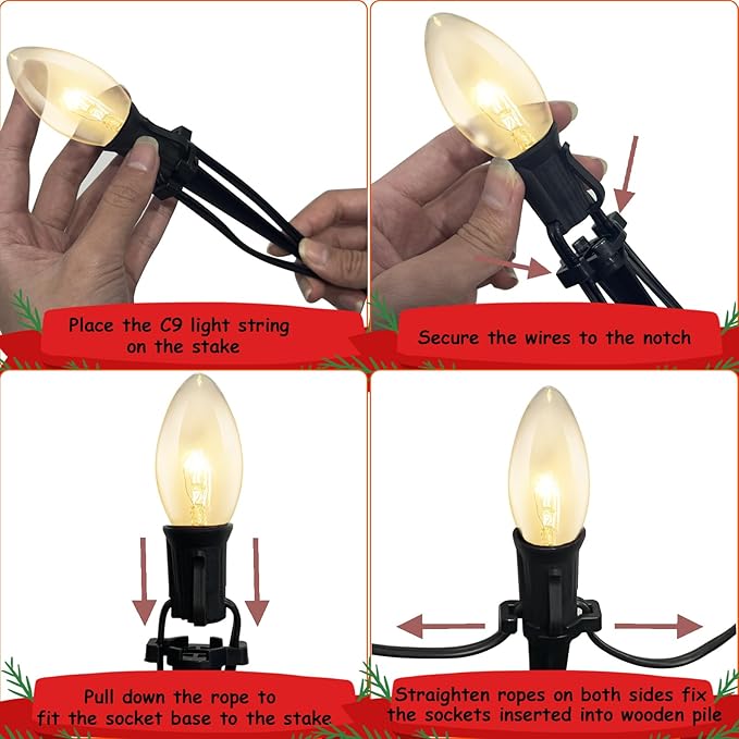 • Applicable Occasion: C9 Christmas pathway string lights with stakes, perfect for Christmas pathway, driveway, walkway, garden ground, and courtyard, separate and line up your personal area with bright gorgeous light, create your Christmas and holidays atmosphere, light up your ground pathway and create beauty at night.