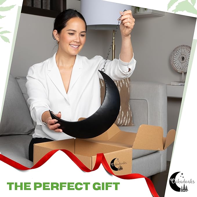 Black Hanging Moon Planter with Drain Holes - Moon Room Decor - Unique Planters for Succulents,Air Plant, Cactus, Artificial Plants- Plant Lover Gifts - Boho,Hippie, Birthdays,Witchy Gifts for Women