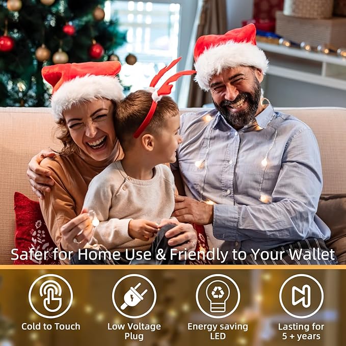 • Christmas Lights & Energy-efficient: Our LED Christmas lights offer a safe lighting solution for your holiday decor, especially when it comes to their soft and gentle glow. The decorative lights are designed with energy-efficient LED bulbs, consuming less electricity and lasting longer than traditional lighting options. They're an eco-friendly choice for your Christmas decorations.