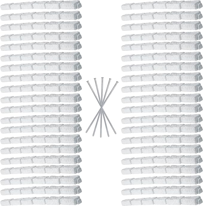 Beuta Landscape Edging | Garden Edging Border | Faux Stone Bricks for Lawn edging, Flower beds, Pathways & Yard Edging– 40 Packs | Each Section Has 6 Bricks 48"L x 4"W x 2.25"H | 120 Spikes |Limewash