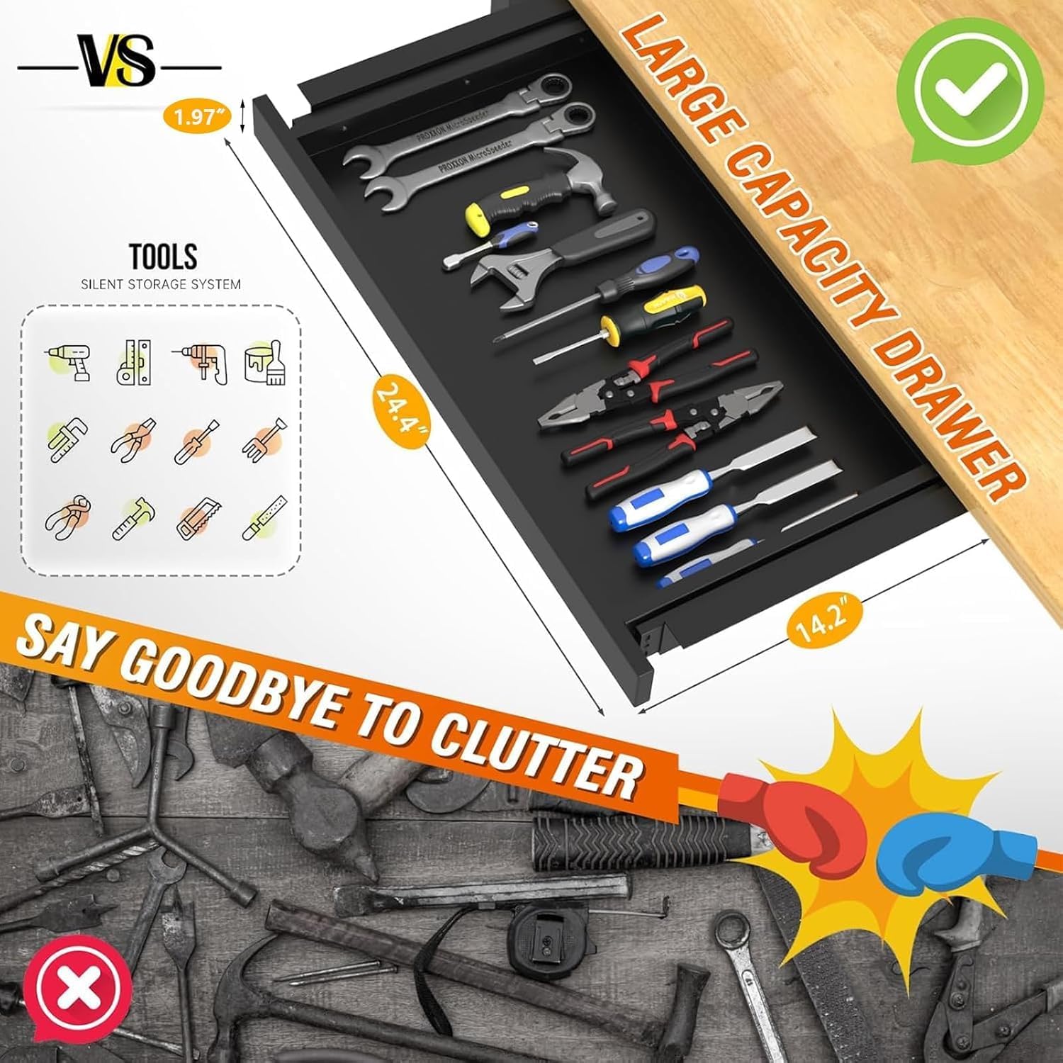 • Spacious Drawer: Keep your workspace tidy and organized with the built-in drawer. Store tools, supplies, and essentials within easy reach, minimizing clutter and maximizing efficiency. Enjoy a clean and streamlined workspace that promotes productivity and enhances your overall workflow.