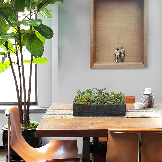 • Premium Material Design: Features high-quality polyethylene artificial succulents rooted in a sturdy rectangular wooden pot, topped with decorative pebbles for an authentic touch. The durable construction ensures stability while adding organic warmth to any space