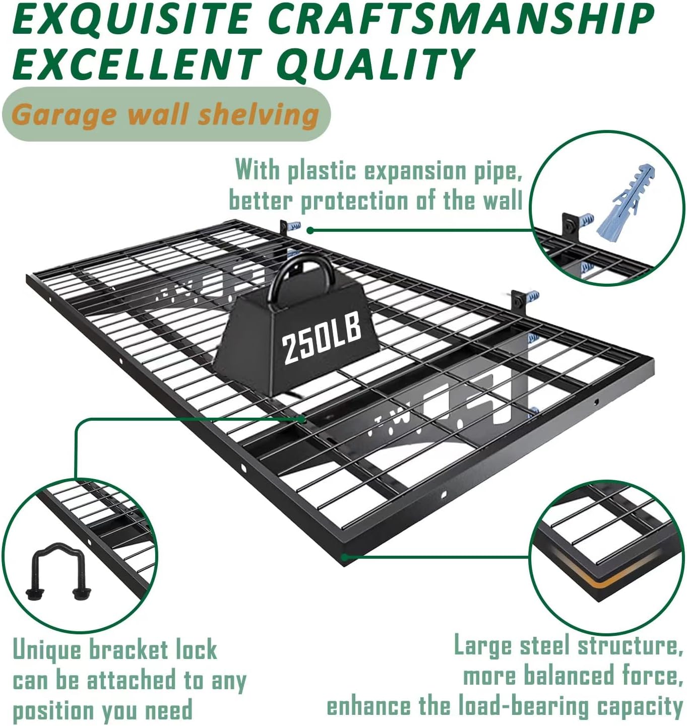 • UNIQUE DESIGN: The surface of the garage wall shelving is made of ‘high temperature powder coating’ process, which makes the surface smoother and more durable, and the edges are also wrapped to avoid scratches.